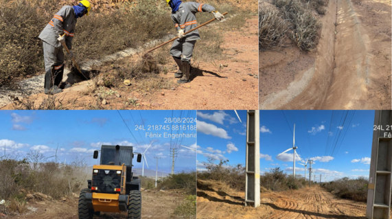 Foi realizada a limpeza de 1.500.00 m2 de vegetação nas redes de média tensão dos complexos eólicos Umburanas, Campo largo I e II, com métodos mecanizados e ajustes manuais, visando previnir incêndio e facilitar a manutenção pela equipe de operação.